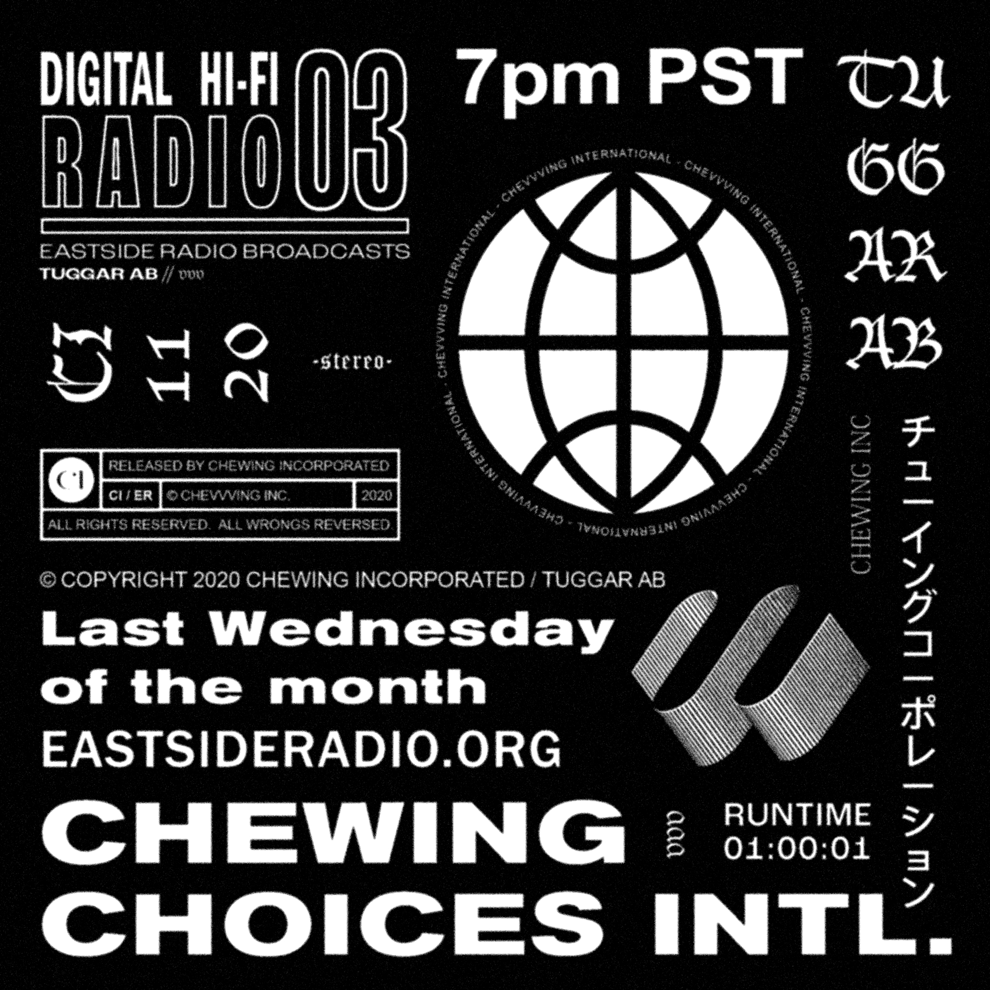 Chewing Choices Intl. is a monthly internet radio show. Hosted by Nik, a mix of music and conversation with other artists about what music they’re listening to. New episodes broadcasts the last Wednesday of the month, 7pm PST on EastsideRadio.org